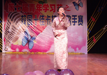 选手们神采飞扬,大秀才艺。一首首歌曲激情洋溢,激烈的掌声、欢呼声接连不断。在互动环节,现场观众上台清唱,积极展现自我。最后,机电系刘盛峰以两首富有民族特色的《赶牲灵》和《姑娘我爱你》一举夺魁;电信系金科、财贸系左嘉歆、外语系于雪梅分获二等奖;财贸系宋文彬、东知才让,建艺系肖化永等获三等奖。凭着扎实的唱功和卓越的舞台表现力,最终刘盛峰,金科,左嘉歆,于雪梅,宋文彬,宋先华,宋导航,肖化永,东知才让,陈佩臻、何妙玲组合荣获本届校园十佳卡拉OK歌手称号。