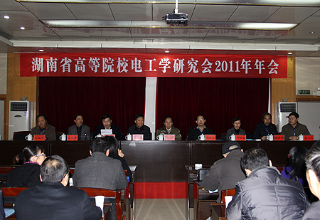 12月17日,湖南省高等院校电工学研究会2011年年会在我院多功能报告厅举行。我院党委书记陈立楚、副院长袁其谦,首届国家级教学名师、中南大学教授、博士生导师蔡自兴,湖南省高等院校电工学研究会理事会理事长潘孟春、副理事长陈明义、罗桂娥、谢胜曙、吴新开、秘书长翁飞兵在主席台就座。参加年会的还有湖南省各高校电工类学科带头人、专业负责人等,大家一齐聆听了六场专题报告并作学术交流与讨论。