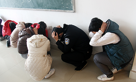 保卫处工作人员教授避震方法