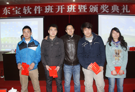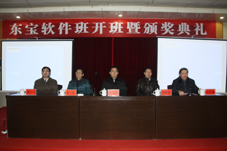 2月29日,我院东宝软件订单班开班暨颁奖典礼在主教学楼报告厅举行。院领导杜祥培、龙伟、袁其谦、郭广军,深圳市东宝信息技术有限公司总经理刘栋材、人力资源经理范文广、总经理助理陈翡群,我院教务处处长胡拥军、招就处处长朱存斋、校企办主任王威然,电信系主任游新娥、党支书记吴连贵与电信系软件技术专业全体教师、东宝软件班全体学生、11级软件技术专业学生参加开班典礼,典礼由袁其谦主持。