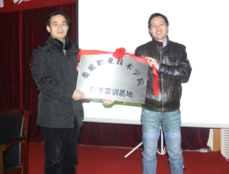 杜祥培向东宝公司授予娄底职业技术学院校外实训基地的牌匾