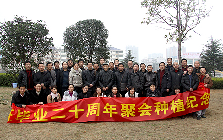 3月16日,我院(原娄底供销学校)计统十班同学举行毕业二十周年聚会,并为我院捐赠两棵桂花树以表对学院栽培的深深感恩。当年恩师李晃、罗如华、吴丽娟、贺汉雄与学生们一齐为树木培土、浇水,共叙往日师生情谊。(李莉)