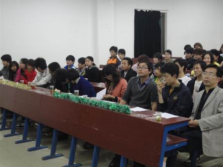 4月12日晚上电信系在主教学楼410举行了演讲比赛总决赛,电信系学工主任李规、学工干事佘彬、辅导员曾凤娇、彭继光、李韶辉老师和学生会主要干部及各班代表观摩了本次决赛。