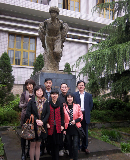 罗盛教雕塑前留影