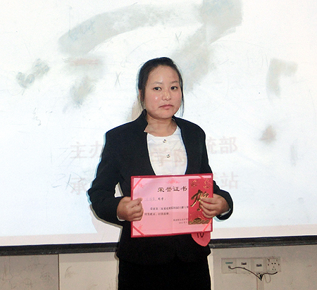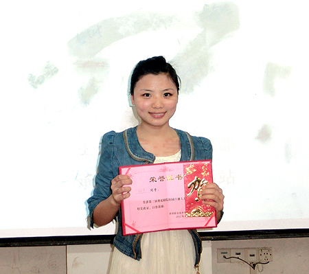 经过激烈角逐,外语系11应教大一班张艺荣获一等奖,外语系11应教订单班石泽英荣获二等奖,三等奖则由体艺系09表演大一班李翔和财贸系11市营大一班钱亚蕾获得。随后,评委们分别为获奖选手颁发了荣誉证书。