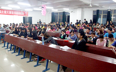 4月25日晚,由我院宣传统战部主办、院广播站承办的第三届校园主播大赛决赛在主教楼210教室举行。评委团由公管系老师谢锋琦,娄底交通频道主播贺虎刚,院广播站站长向勇、副站长李珍和李晓雨组成,各系参赛选手及啦啦队出席比赛。大赛由广播站成员胡月、殷泽恒主持。