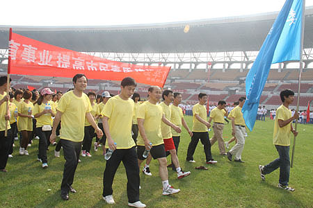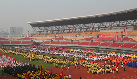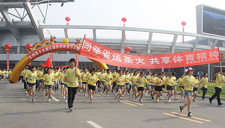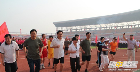 5月18日上午,为迎接2014年在我市举行的第十二届省运会,娄底市在市体育馆举行了隆重的迎省运万人健步跑活动。市领导与娄底各单位一万多人组成了96个方阵一起健步起跑,彰显青春娄底的蓬勃生机和活力。我院以院领导欧友佳、刘自斌、曾国基、李天仁、向右铭带队,组织全院2000余名师生,组成20个方阵,身着统一服装,迈着昂扬的步伐,喊着响亮的口号,一路向前,成为了全部队伍中最壮观耀眼的一道风景线。(刘艳)