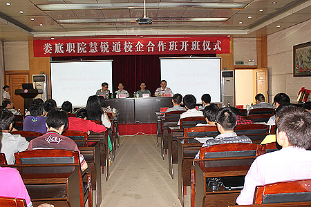 5月18日,我院慧锐通校企合作班开班典礼在主教学楼多功能报告厅举行。院领导龙伟、郭广军,深圳市慧锐通电器制造有限公司总裁肖铭、销售部经理姜本于、慧锐通公司长沙办事处经理吕磊以及电信系、校企合作办领导,电信系网络技术专业全体师生、娄底智能工程商代表参加开班典礼,典礼由龙伟主持。