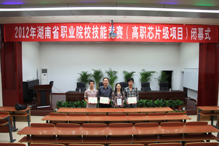 由湖南省教育厅主办,湖南省教育科学研究院承办的2012年湖南省职业院校技能竞赛于5月14日至16日分别在大众传媒职业技术学院、株洲职业技术学院等20个赛点举行。由电信系系主任游新娥、总支书记吴莲贵任领队的电信系代表队参加了高职组计算机网络应用、电子产品检测与维修(芯片级)两个项目的比赛。