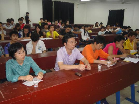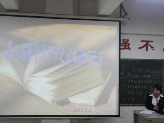 6月6日晚上,由电信系承办的第八届青年学习节之读书推评大赛总决赛在主教楼410举行决赛,评委有电信系学工主任李规、学工干事佘斌、辅导员彭继光、李韶辉、吴喜平老师。