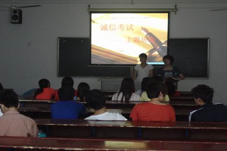 随着期末考试的临近,为进一步严肃考风考纪,全面提高学生的自身素质与修养,营造一个良好的考试氛围,6月3日晚上,电信系10、11级各班开展了“诚信考试”和“网上评教”的主题班会。