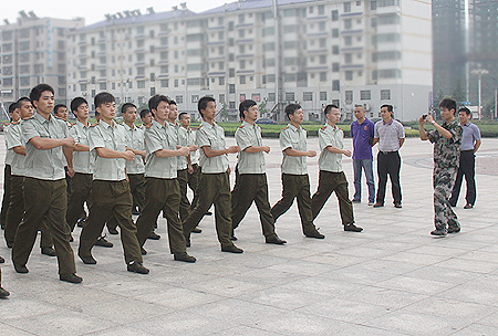 按照自愿报名、保卫处筛选的程序,我院从2010级和2011级学生中选拔了68名学生组成学生军训教官团,于3月开始利用早操时间进行训练。8月5日,他们开始了为期12天的集训。