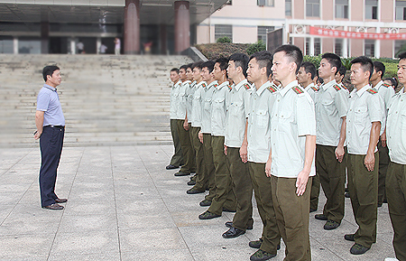 “同学们,你们辛苦了!”8月12日,院长杜祥培、副院长刘自斌在保卫处处长邹涛陪同下,亲切看望了正在集训的学生军训教官们。