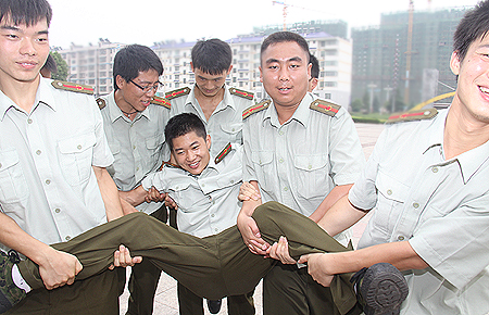 “这些孩子们真的不错。训练认真,能吃苦,守纪律,当然玩起来也很疯,相互间培养了很好的感情。”总教官彭军告诉记者,8月18日,学生教官就会开始训练中专新生,接下来训练大专新生,一直持续到9月中旬。说话间,彭教官拿起一个特大水壶喝水,只见胖大海、麦冬悬浮其中。“每天喊操,嗓子全靠它了。”小女刚满月不久,彭教官称,为了搞好训练,只有把女儿全托给了老婆和丈母娘。“训练结束后,一定要好好补偿。”