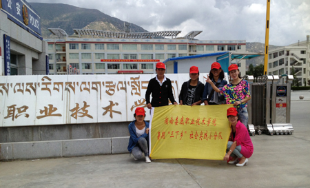 为贯彻落实胡锦涛总书记在纪念建团90周年大会上的重要讲话精神和《教育部等部门关于进一步加强高校实践育人工作的若干意见》精神,充分发挥社会实践作为加强和改进大学生思想政治教育重要途径的优势,进一步引导广大青年学生在服务民族文化的传承、创新和弘扬中发挥引领作用,积极响应学校团委2012年暑期 “三下乡”社会实践活动,财贸系于7月赴西藏职业技术学院开展了“民族文化交流”活动。