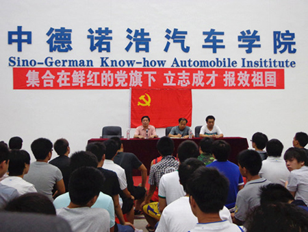 9月3日晚7点30分,娄底职院新培训楼大厅灯火辉煌,庄严肃穆,汽车学院在这里隆重举行新生入党知识教育活动,会议由汽车学院封权初院长主持,娄底职院原党委副书记彭建胜教授做了题为“集合在鲜红的党旗下,立志成才,报效祖国”的报告。汽车学院副院长苏志华、辅导员及2012级全体新生聆听了一场生动活泼、意义深刻的报告。