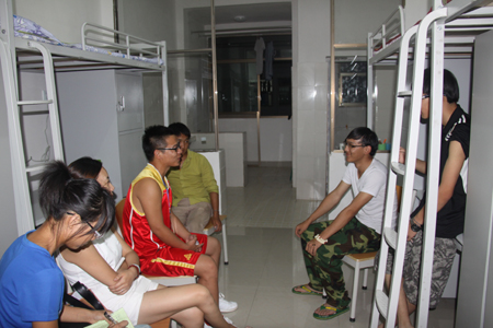 记者来到财贸系12财管班,趁军训休息时间,与钟颖同学聊了起来。她来自四季如春的云南,是个瘦小的女孩子。“食堂饭菜相对比较便宜。一开始我很想家,这边的同学非常热情,让我觉得在娄底职院又有了一个家。我一定会好好珍惜,让大学三年的生活过得充实而有意义。”