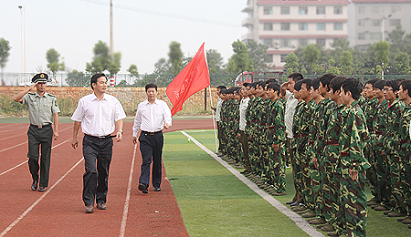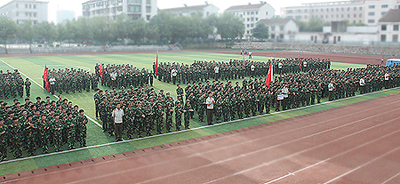 院长杜祥培在副院长刘自斌、军训总教官彭军陪同下,巡视了我院2012级新生队列。随后,各队列以昂扬向上的精神面貌、整齐的步伐、挺拔的军姿依次通过主席台,接受了领导们的检阅。学生军训教官进行了精彩的队列表演。