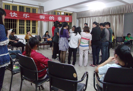 9月27日晚七点半,为了加强新生入学适应性教育,学工处心理咨询室在科技楼二楼的团体辅导室举行新生入学团体辅导活动。参与本次活动的是来自各系部的2012级新生代表,活动由咨询室邓艺颖老师组织。