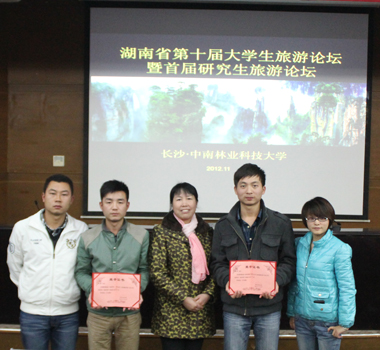 11月24日,湖南省第十届大学生旅游论坛旅游营销微电影大赛在湖南长沙中南林业科技大学隆重举行。我院公管系学生张正、袁康在系主任雷晚蓉、学生管理干事谭彪的带领下参加了本次比赛。