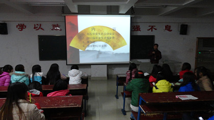 11月25日晚7点,外语系10级毕业生就业指导讲座在主教楼210举行。招生就业处郭平老师主讲,学工主任贺建良、辅导员周春红老师及10级全体毕业生聆听讲座。