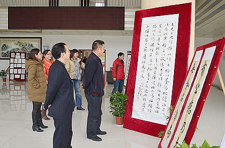“这幅字遒劲有力,非常有气势。”“这幅联对仗工整,字体纤柔秀美,自成一家……”12月4日,我院纪委联合院教职工书画摄影协会、院团委举办的“喜迎十八大 廉政校园行”书画比赛优秀作品在综合楼大厅展出,吸引了过往的师生观展品评。此次展出优秀作品60余幅,其中硬笔作品30余幅,软笔作品30余幅。在品评鉴赏中,师生们在书画艺术中受到了熏陶,深切感受到了廉政文化的魅力。(欧阳琦)