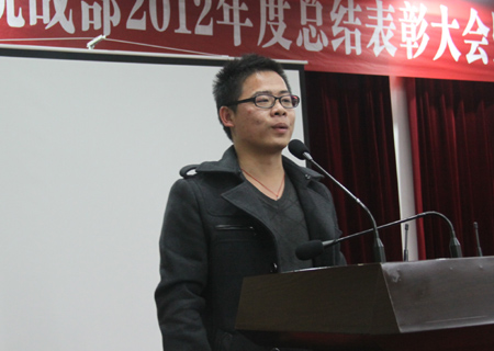 优秀成员代表黄军进行了经验介绍,他鼓励2012级新成员要有礼貌,用爱心去从事新闻工作,把院报和广播站建设得更上一个台阶。