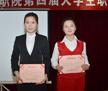 评委根据选手的职业生涯规划设计演讲和现场答辩表现,以合适性、合理性、真实性、逻辑性、创新性、可行性为主要评选标准,从陈述内容、陈述过程、基本素养、即时效果、个人特色、应答能力、回答内容几方面综合评定,最终电信系詹雪琼荣获一等奖,公管系付丽、外语系胡月荣获二等奖,财贸系费丽丝、欧阳倩、周春伶获得三等奖,吴东等9人获得优胜奖,胡月摘得最佳表演奖,李邵辉、周春红、成柳才3名教师被评为优秀指导老师,财贸系、电信系、外语系获最佳组织奖。评委及领导们为获奖选手颁发了荣誉证书。