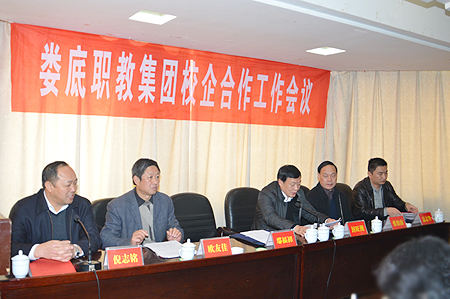 鄢福初作重要讲话。鄢福初指出,加强校企合作,是职业教育服务娄底经济社会发展的战略举措,是提升职业教育服务能力的迫切要求,是促进就业改善民生的重要手段。为此,当前和今后一段时期,娄底要集中精力抓好几个重点工作:一是集中力量办好一批示范性职业学校,二是下真功夫调整优化专业结构,三是采取有效措施落实校企合作育人机制,四是切实加强“双师型”教师队伍建设。鄢福初要求切实强化校企合作的保障力度,进一步加大经费保障,进一步加强组织保障,以十八大精神为指导,全面深化校企合作,抓住机遇,乘势而上,共同开创娄底职教集团的工作新局面。