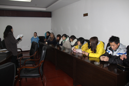省语委普通话测试专家胡立忠首先介绍了此次检查评估工作的程序以及相关事项。胡拥军代表学院从三个方面汇报我院2010年以来普通话水平测试工作情况,一是加强领导、健全机构、保证经费、不断推进语言文字工作;二是广泛宣传、深入发动、丰富活动、营造说普通话的浓厚氛围;三是强化措施、规范制度、狠抓落实、全面开展普通话培训测试工作。三位专家分别查阅资料、组织10名师生问卷调查、抽查审核测试录音音档。