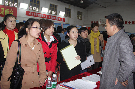 本次参与招聘的单位有北京金悦集团公司、创维集团公司、汉拿山餐饮集团公司、比亚迪有限公司、东芝公司、方正证券公司,方太集团公司、步步高超市、娄底百雄堂集团公司、娄底东升房地产公司等等,岗位涉及机电、模具、电子、网络、建筑工程、艺术设计、农林、资源、物流、酒管、财会、营销、文秘、旅游、汽车等多个领域,大部分单位把所要招聘的岗位、人数、工资待遇及福利待遇都详细地罗列出来,方便了毕业生根据自身的情况做最佳选择。北京金悦集团公司连续几年来院招聘,该公司人力资源部部长彭媛华认为我院毕业生心态好,上手快,在该公司表现出色。在招聘会中还出现了不少我院往届毕业生以企业代表身份前来招聘的情况。毕业于我院07级外语系的王同学表示,她目前正在创维集团人力资源部工作,这次回母校招聘感觉到2013届毕业生大部分能够得体流利地向企业推销自己,综合素质很强。汉拿山集团的两名招聘代表原毕业于公管系09级酒管班,与他们同来的汉拿山集团雷副总表示,娄底职院的学生在该公司表现突出,已有多名毕业生在中层干部岗位上工作,因此这次该公司又来招聘人才,并希望能与我院形成长期合作的关系。
