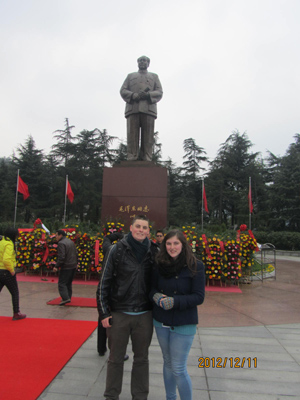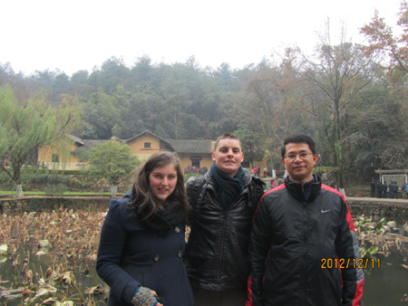 我校现有英籍外教两名,,2012年9月开始在我校任教。他俩性格开朗,对中国文化、历史,武术、中餐等都有浓厚的兴趣。我院领导在了解到他们希望学习中国文化的需求后,特别安排他们到韶山参观学习。在韶山他们分别参观了毛泽东故居、毛泽东铜像广场、毛泽东纪念馆。通过此次学习参观,他们对于中国的历史和现状有了更深入地了解,表示愿意留在中国学好中文,学习中国功夫,做中西文化交流的使者。(李晶)
