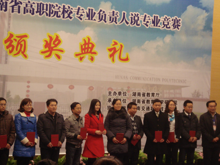 12月14日,由省教育厅主办、省教科院承办的2012年度湖南省高职院校专业负责人说专业竞赛在湖南交通职业技术学院举行,我院中德诺浩汽车学院汽车技术服务与营销专业带头人朱靖华老师获三等奖。朱老师竞赛演讲思路清晰、专业建设理念先进、课件内容设计出色,但由于汽车技术服务与营销专业是我校新建专业,最终屈居三等奖。