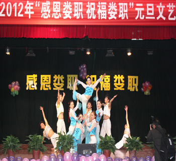 晚会在12级旅管班同学带来的恰恰舞曲中开始,动感的节奏,欢快的舞步让我们看到了红红火火的2013年正向我们大步走来。本次晚会是历年来各班准备最充分的一次晚会,为成为本次舞台上的焦点,演员们废寝忘食不错过每一个可以排练的课余时间。入党宣誓和表彰大会环节也分别穿插在了本次晚会的十二个节目当中。