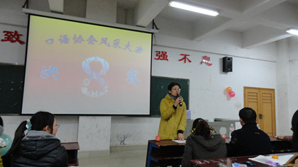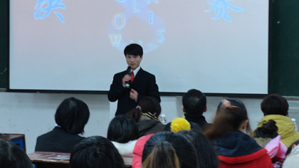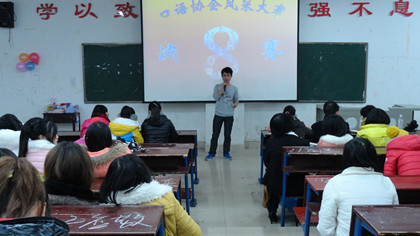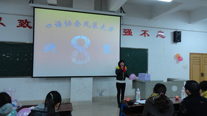 12月20日晚7点,外语系口语协会承办的第八届英语口语风采大赛决赛在主教楼110举行。担任此次大赛的评委有系主任刘燕、学工主任贺建良、教研室主任周萍、辅导员周春红老师,外语系全体学生和其他系部英语爱好者参加。