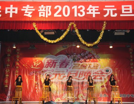 在舞蹈《青春娄底》的表演中晚会拉开帷幕,中专部主任周志和致辞,他总结了中专部一年的工作成绩,并表示,在新的一年里,中专部全体师生将继续扎实苦干、开拓创新、与时俱进,在2013年一起谱写中专部辉煌灿烂的未来!副院长周意坚在讲话中向中专部全体师生致以新年的问候,希望中专部不骄不躁,继续努力,发扬成绩,争取更大胜利!