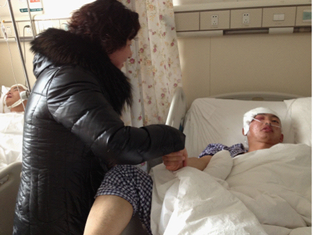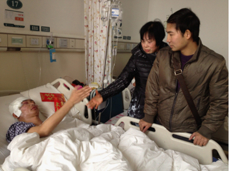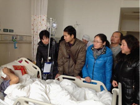 学院领导非常重视,副院长刘自斌亲自派车并嘱咐电信系领导为患病学子尽快送去祝福与捐款。1月9日上午,学工处副处长罗丽萍,电信系主任游新娥、总支书记吴莲贵、学工副主任李规、辅导员吴喜平及喻齐相同班同学等师生代表一行赶到湖南湘雅一医院看望于1月7日成功做完脑瘤手术的喻齐相同学,并送去募捐到的还存着师生员工体温的爱心款24998元。