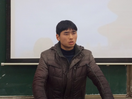 系学工主任申再林发表讲话,他充分肯定了该系学生会所取得的成绩,要求各个部门查缺补漏,在新年里更上一层楼。(文/黄鹏程 图/蔡巧)