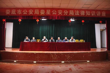 为增强我院学生法制观念和安全防范意识,规范学生日常行为,树立学生良好的知法、懂法、守法观念,1月15日下午,学院保卫处、中专部联合举办的法律知识讲座在南苑礼堂举行,本次讲座特邀了娄星公安分局法制办案件审核室副主任曾林海、禁毒大队副大队长王华两位警官主讲,学院党委委员、副院长刘自斌,娄星公安分局党委委员、副局长易崇,乐坪派出所所长刘向德,保卫处处长邹涛,中专部主任周志和出席了本次讲座,保卫处、中专部相关人员以及我院学生代表聆听了讲座,讲座由保卫处处长邹涛主持。