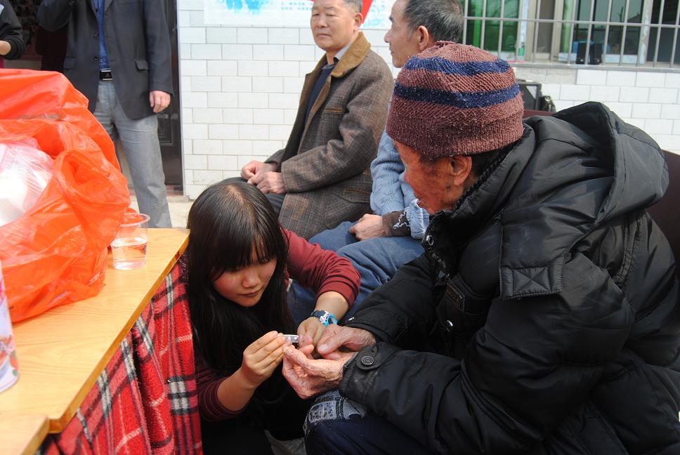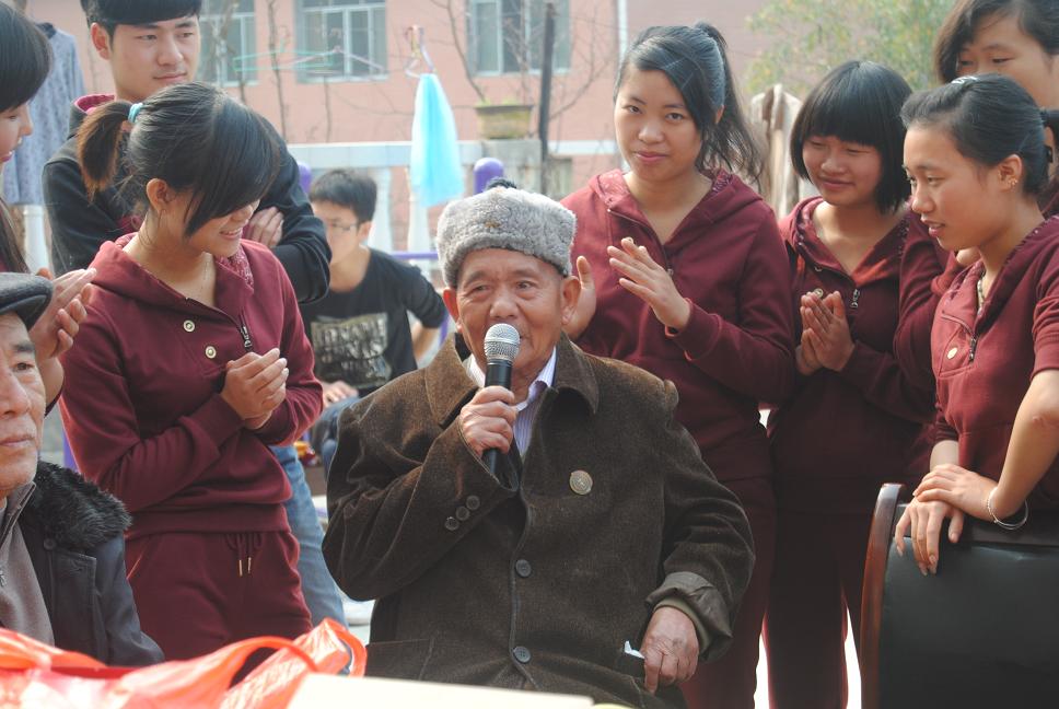 志愿者们提着水果、牛奶等慰问品踏入如家老年公寓,并帮助老人们收拾衣物、捶背、修指甲、背他们下来晒太阳并亲切的与之进行交谈等。有几位老人一开心当场就给大家亮了一嗓子,可所谓人老艺不衰,财务管理班的同学也纷纷给老人们献上形式多样精彩的节目,整个过程充满温馨、愉快。活动最后,12级财务管理班团支书杨蒙召带头针对此次活动进行了宣 誓。
