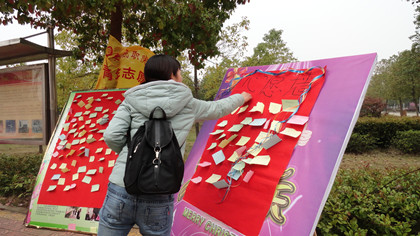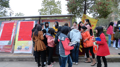 3月14日,外语系志愿者发挥其专业特长为全院同学顺利通过英语A级考试提供帮助,他们在学院一栋宿舍路口设立“学雷锋,助A级”为主题的便民服务。