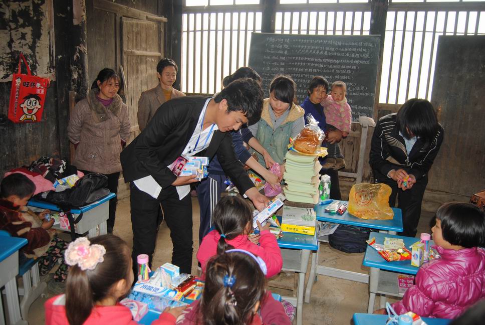 3月25日,财贸系志愿者服务队再一次远赴新化县天门乡青围小学,为那里的留守孩子们带来了向社会各界人士募集捐款到的雨伞、本子、笔芯、铅笔、尺子及衣物等价值共三千元的学习、生活必需品,并一一发放到每个孩子手中,勉励孩子们要铭记社会各界的深情关爱,懂得感恩,希望孩子们一定要珍惜现在所拥有的,勇敢面对暂时的困难,克服困难,在困难中磨练自己、努力培养独立生活能力,将来能够真正成为有用于家庭、有用于国家、有用于社会的优秀人才。面对着那一张张瘦小却充满活力的笑脸,那一双双渴求却充满坚定的眼神,志愿者们的心因留守儿童那纯洁无瑕的笑脸和坚定学习的信念久久不能平静,表示要珍惜自己所拥有的良好的生活条件,努力学习,学有所成,为社会做贡献,为留守儿童的成长贡献出自己的一份力量! 并在此同时志愿者们还给在山区艰苦条件下进行教育工作的支教和老师送去了温暖和鼓励。