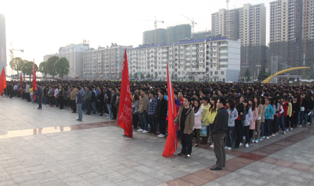 4月7日清早,我院在文化广场举行“发扬艰苦奋斗精神,培养勤俭节约品质”为主题的“光盘行动”启动仪式。副院长刘自斌、学工处处长张一军、副处长江国元、戴志鹏,系部学工主任和辅导员及全院学生参加了启动仪式, 张一军主持启动仪式。