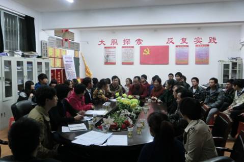 4月9日晚7:00点,电信系(实训楼301)会议室内,一堂由电信系党总支组织的以“学党章、转作风、促发展”为主题的学习交流座谈会正在进行。座谈会由总支书记吴莲贵主持,电信系40多名党员和部分入党积极分子参加,院组织部部长刘高永、组织干事曾怡华等同志也应邀参加了座谈。