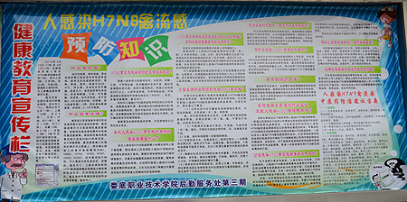 近期H7N9禽流感在国内多地发现感染病例,为此我院启动突发公共卫生事件应急预案,制订了专门的《感染H7N9禽流感疫情防控措施方案》,以“早发现,早报告,早隔离,早治疗”为原则,加强卫生管理,普及防控知识,提高师生自我防护能力。(欧阳琦)