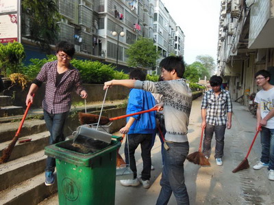 除了对社区的计算机进行义诊外,志愿者们还对社区的环境进行了大清扫。社区的居民感谢志愿者们义务为社区提供服务,对我系学生投来赞许的目光。