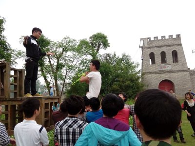 5月5日早晨七点半,资源工程系百余名大学生在系学工主任曾素纯和系辅导员周莉老师及素质拓展公司教练的带领下来到百雄堂拓展基地,参加拓展活动。在活动中,同学们相互支持,相互帮助,顺利完成了“合力桥”,“攀岩”,“空中单杠”,“毕业墙”等拓展项目。为了成功的完成“毕业墙”这个项目,同学们都踊跃发言,争先献计献策,甚至有的同学主动用“倒挂”,“悬浮”等高难度动作帮助最后一位同学越过“毕业墙”。