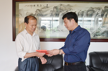 刘自斌代表学院向喻齐相父亲送上第二批捐款