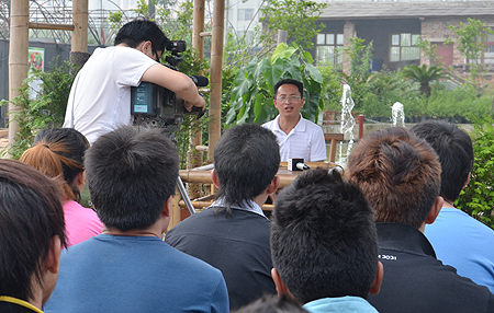 5月21日,我院农林工程系12级园林工程技术1班“寻找身边的张丽莉”主题班会在农林实训基地召开。农林工程系主任刘梅秋主持班会,我院张丽莉式骨干教师曾玉华老师介绍自己教学实践服务三农事迹,学生们纷纷发言谈体会,农林系教师周永胜、学生创业中心负责人、江溪村两位农民朋友应邀参加班会并发言。中国教育电视台记者对班会进行了全程采访。