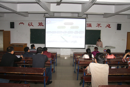 比赛分两步进行,先由45岁以下的乙组教师演示PPT并答辩,再由45岁以上的甲组教师演示PPT。经过2 个小时的角逐,陈满玉、肖希蓉两位老师分获甲乙两组第一名。赛后,彭建胜研究员对比赛做了精彩点评。他认为此次比赛组织得力,气氛热烈;课件精美,内容全面;准备充分,演示熟练;全员参赛,集体成长。